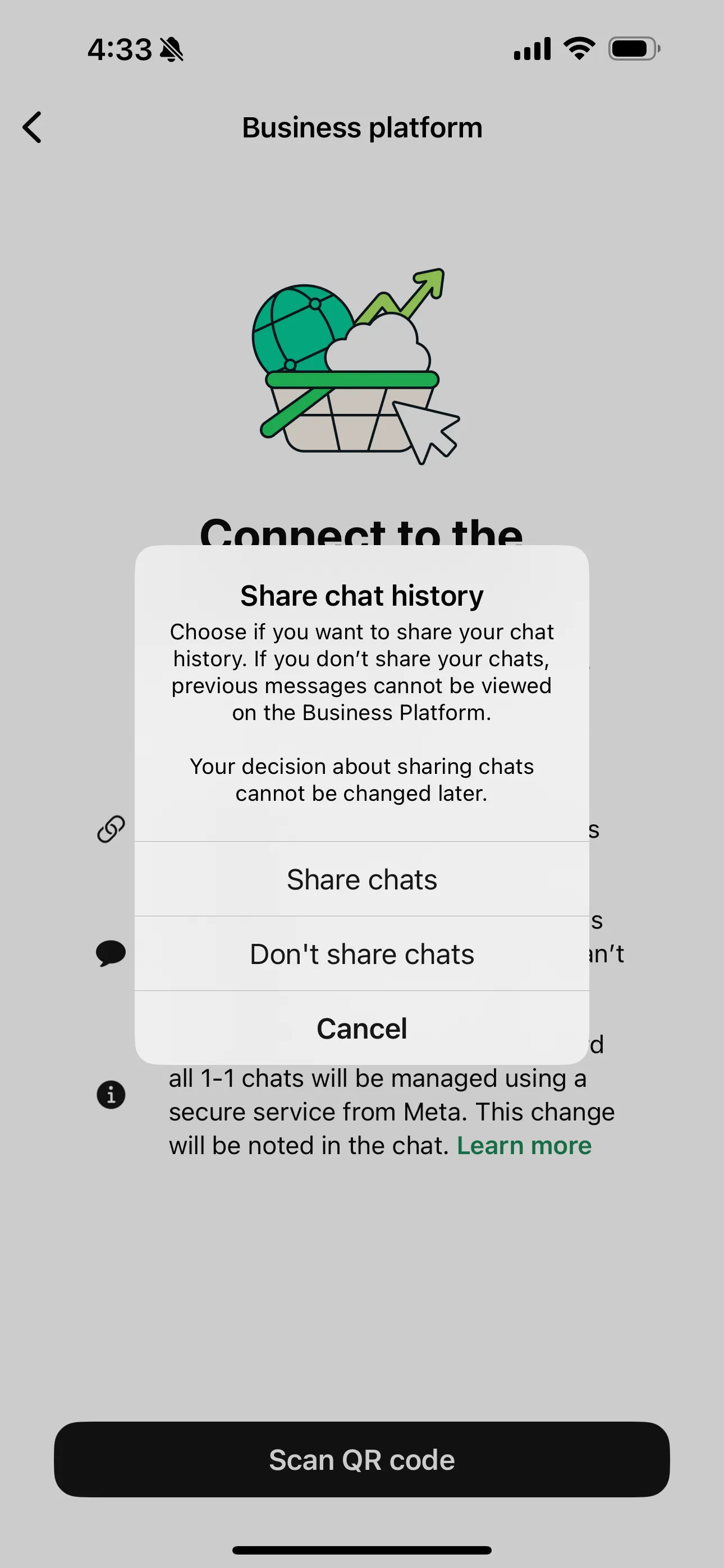 - Select your existing WhatsApp Business Account you wish to integrate.
