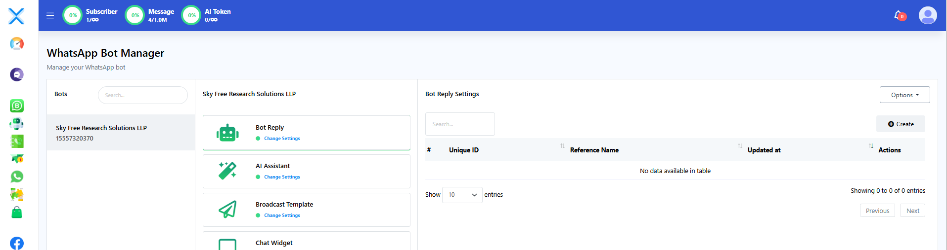 (Bot Manager ->WhatsApp Account -> Bot Reply -> Create)