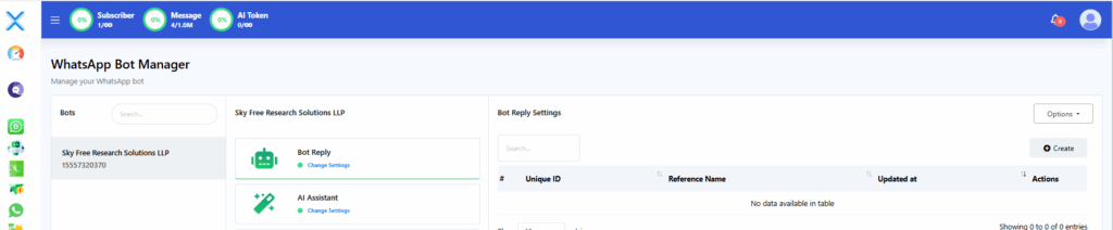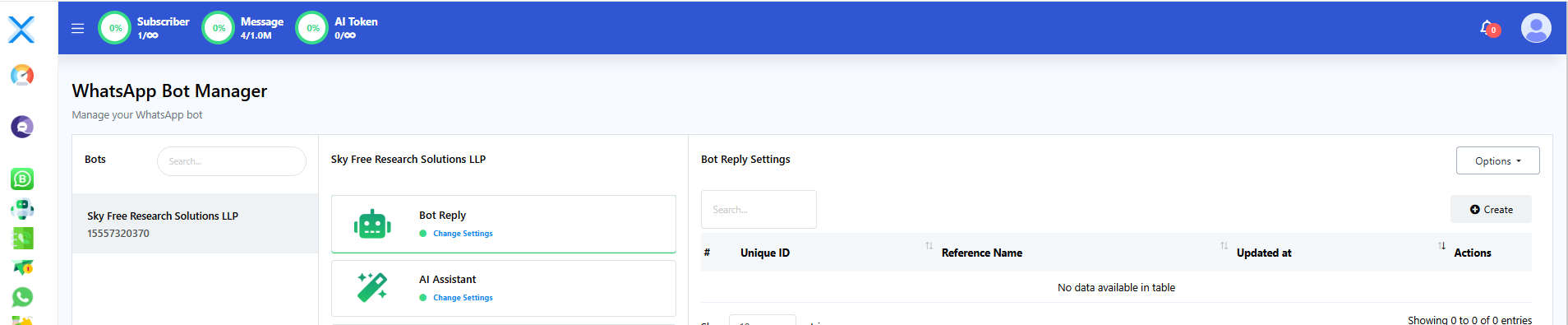 • Go to the Bot Manager menu in the XpressBot dashboard.