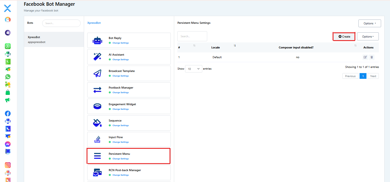 Setting up a persistent menu in Messenger with Xpressbot is quick and straightforward. Just follow these steps: