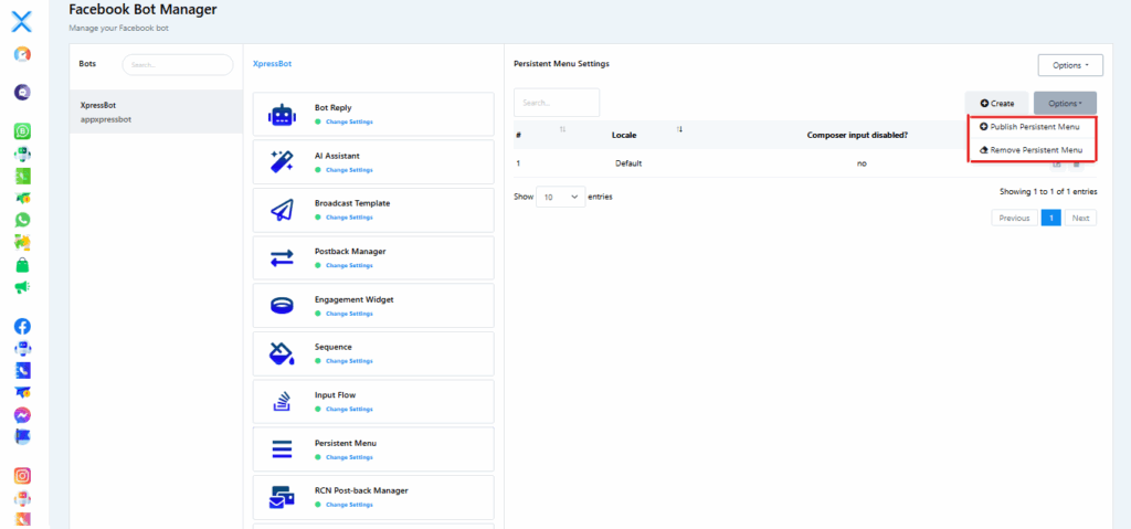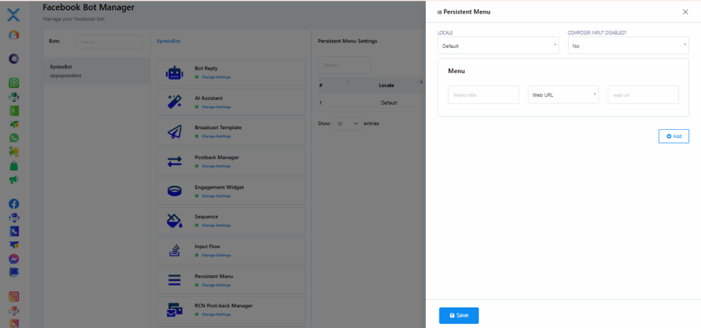 The Persistent Menu in Xpressbot ensures that essential features are always accessible during a user’s interaction with your Facebook Messenger bot. It removes the need to scroll through long conversations or retype commands boosting both usability and engagement.