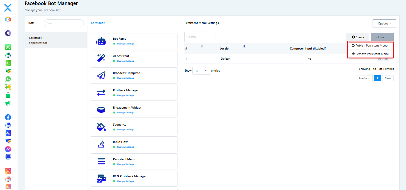 Yes, you can easily update or delete any menu from the Persistent Menu section in Xpressbot.