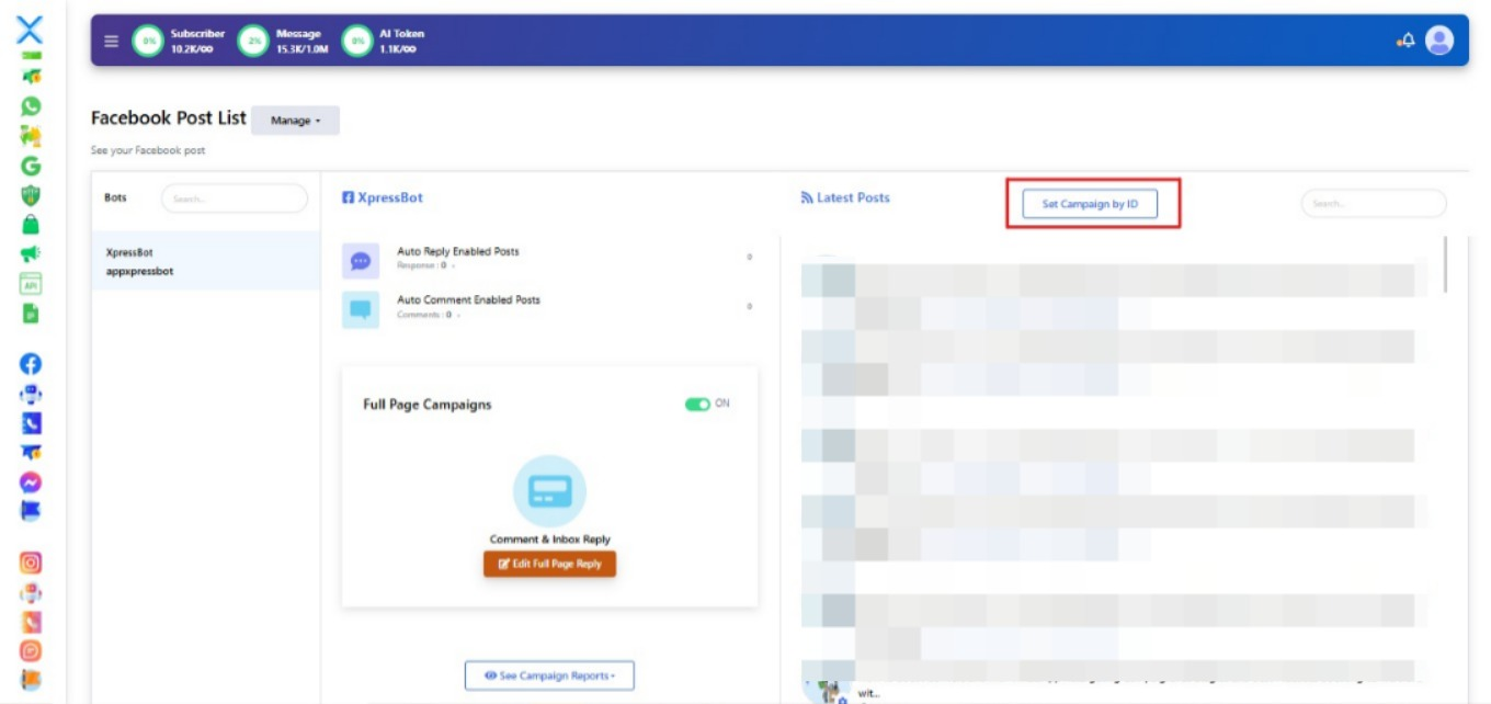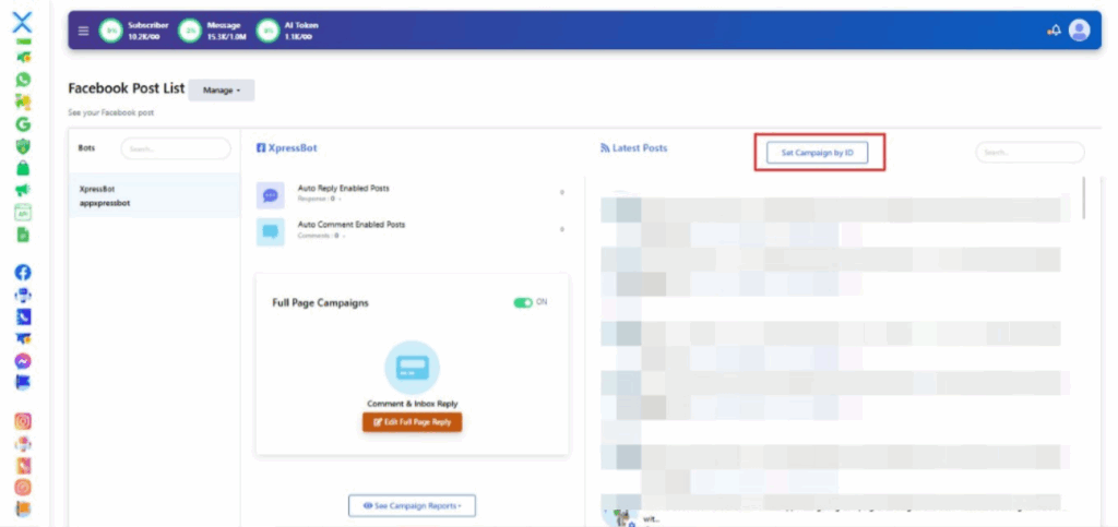 Click “Set Campaign by ID”, then paste the Post ID to manage or assign automation rules for that exact post.